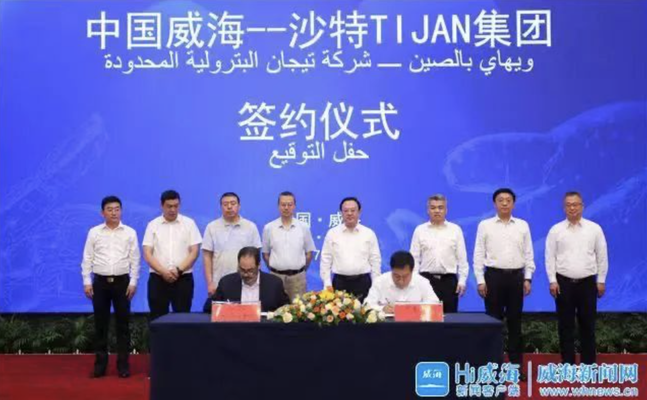 7月7日,中國威?!程豑IJAN集團簽約儀式舉行。市委書記閆劍波、Tijan集團總裁艾哈邁德卡亞特講話,市委副書記劉樹軍主持,市領導李建、鄧勇、趙廣洪出席。威海廣泰副總經理尚羽代表威海廣泰與沙特TIJAN集團簽署業務合作協議?! ¢Z劍波在講話中說,威海產業結構合理、生態環境…